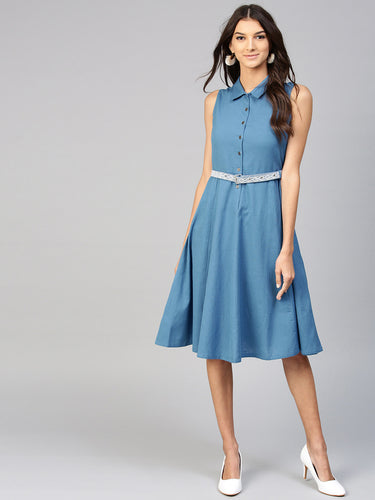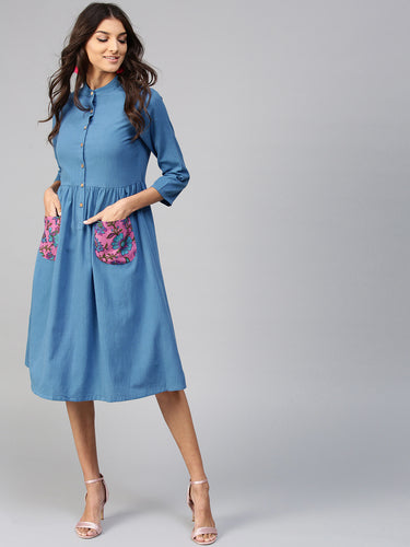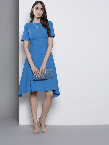 Queen ellie Women Blue Solid Fit & Flare Dress