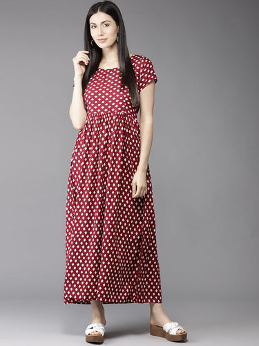 Queen ellie Women Maroon & White Printed Maxi Dress
