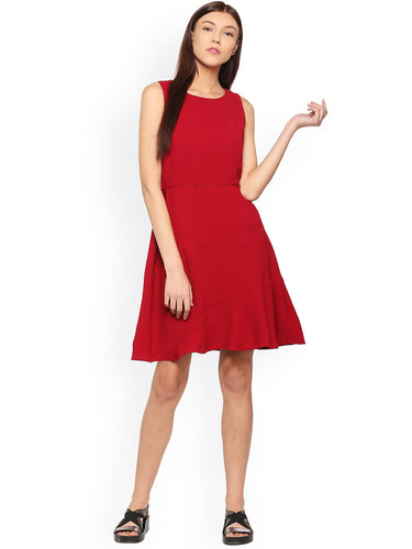 Queen ellie Red Solid Fit and Flare Dress