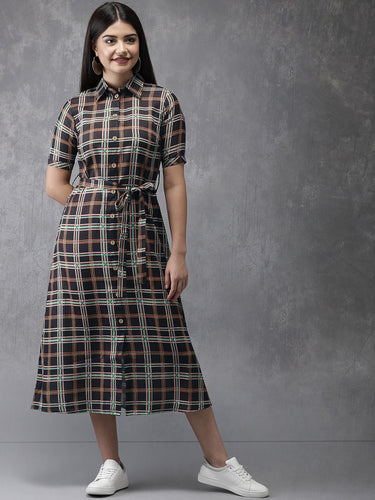 Queen ellie Women Black & Yellow Checked Fusion A-Line Kurta