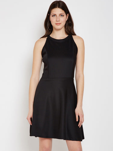 Queen ellie Women Black Solid Accordian Pleats A-Line Dress