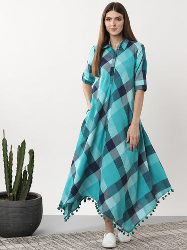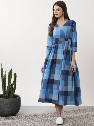 Queen ellie Women Blue Checked Fusion Maxi Dress