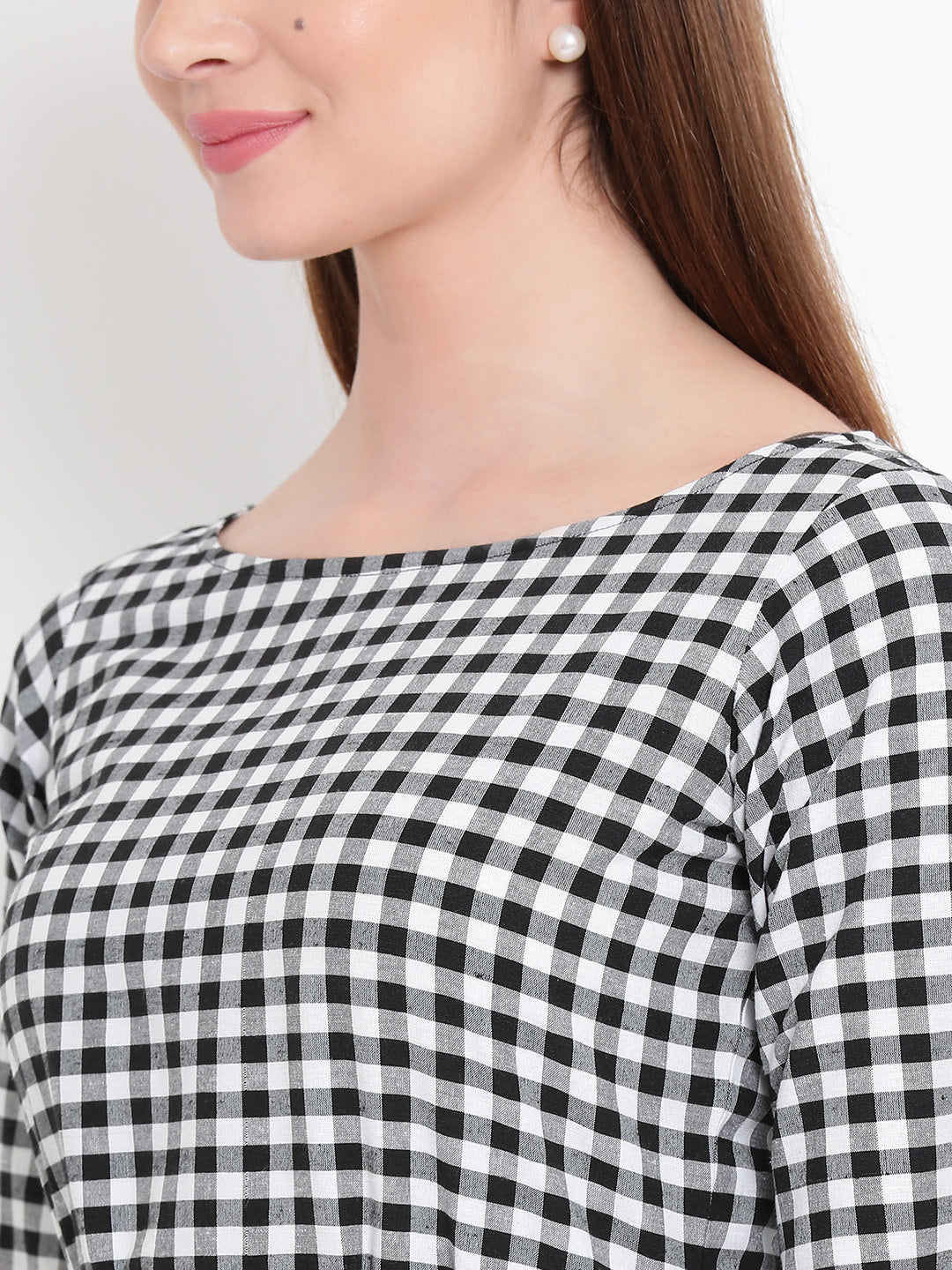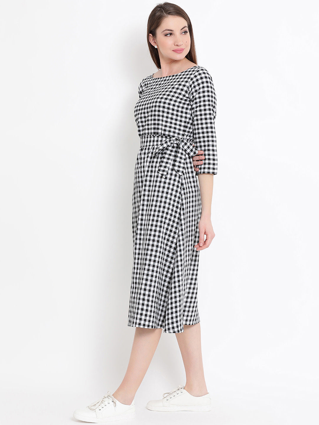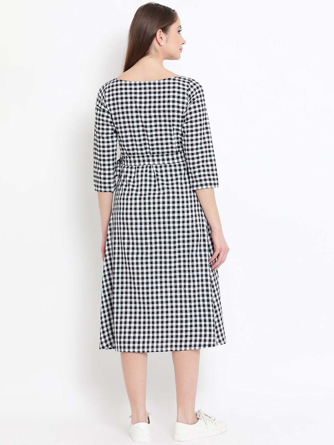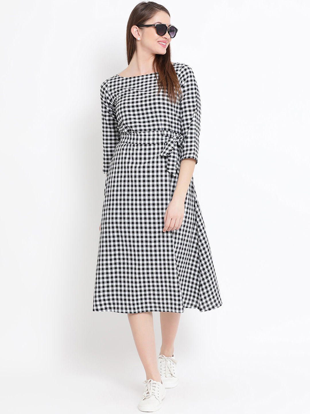 • Load image into Gallery viewer, Queen ellie Women Black Checked Fit and Flare Dress