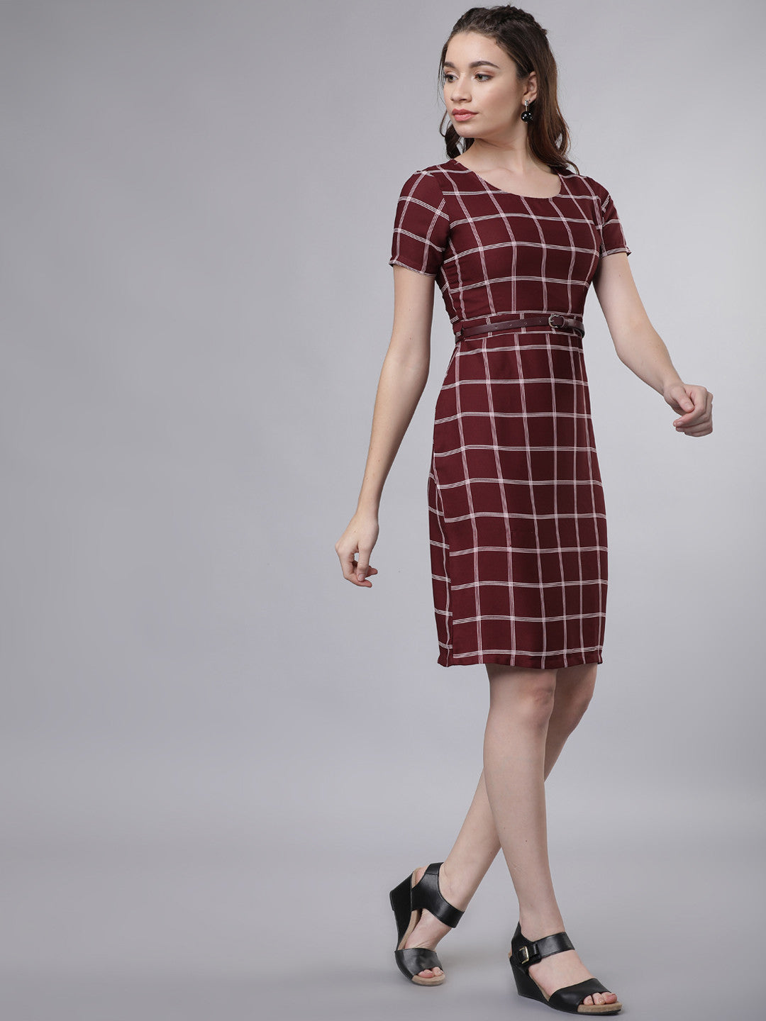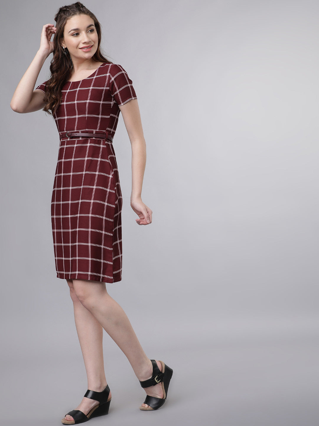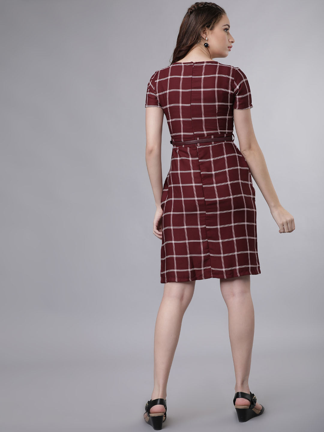 • Load image into Gallery viewer, Queen ellie Women Burgundy Checked Sheath Dress