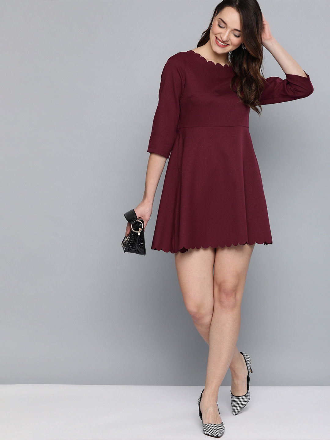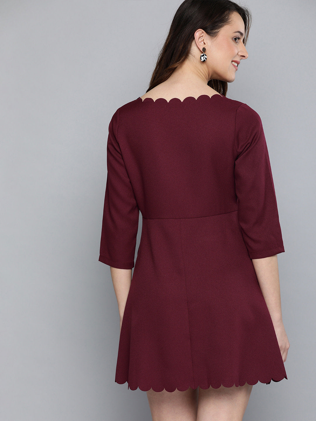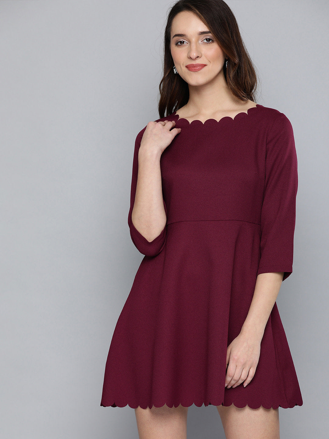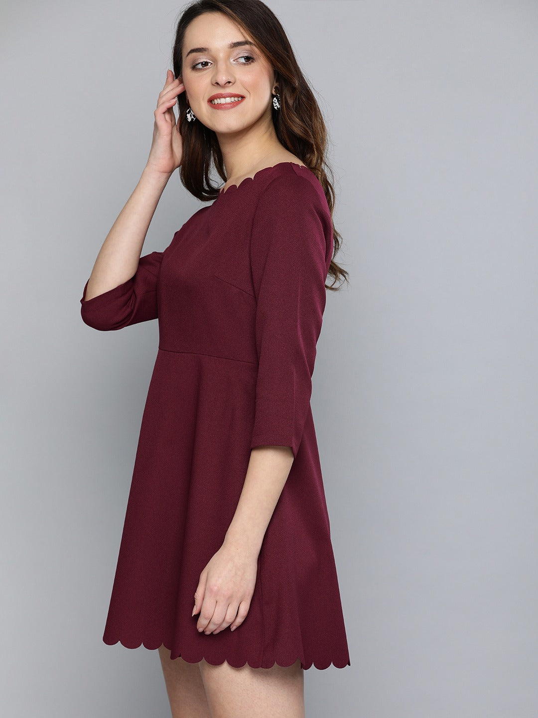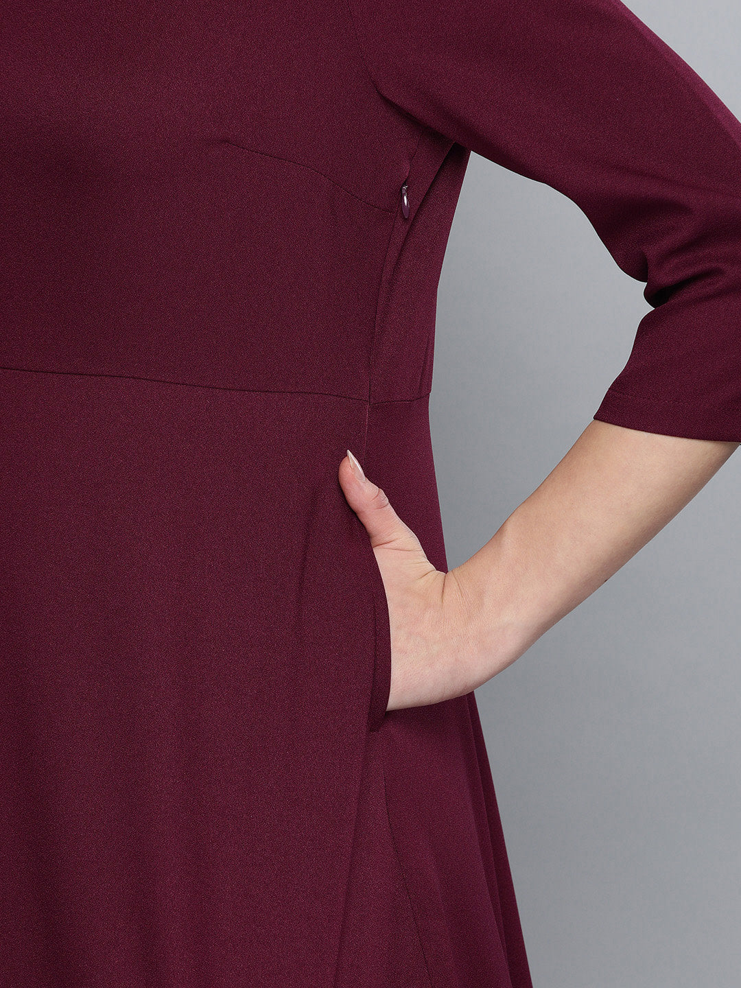 • Load image into Gallery viewer, Queen ellie Women Burgundy Solid A-Line Dress
