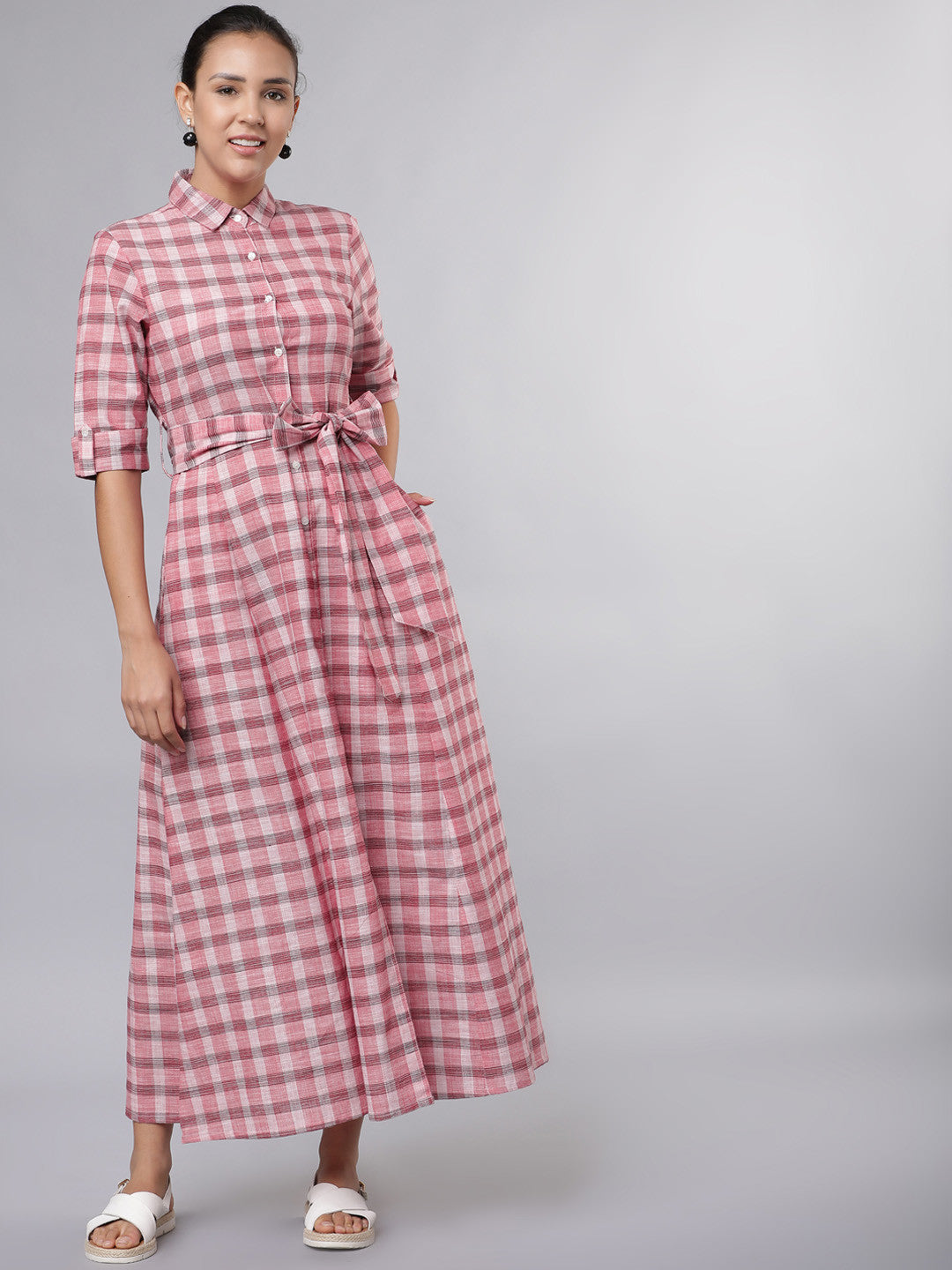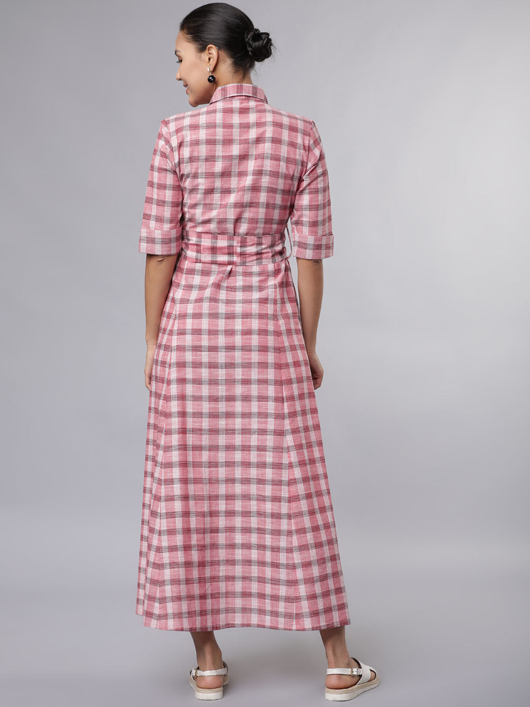 • Load image into Gallery viewer, Queen ellie Women Maroon Checked Maxi Dress