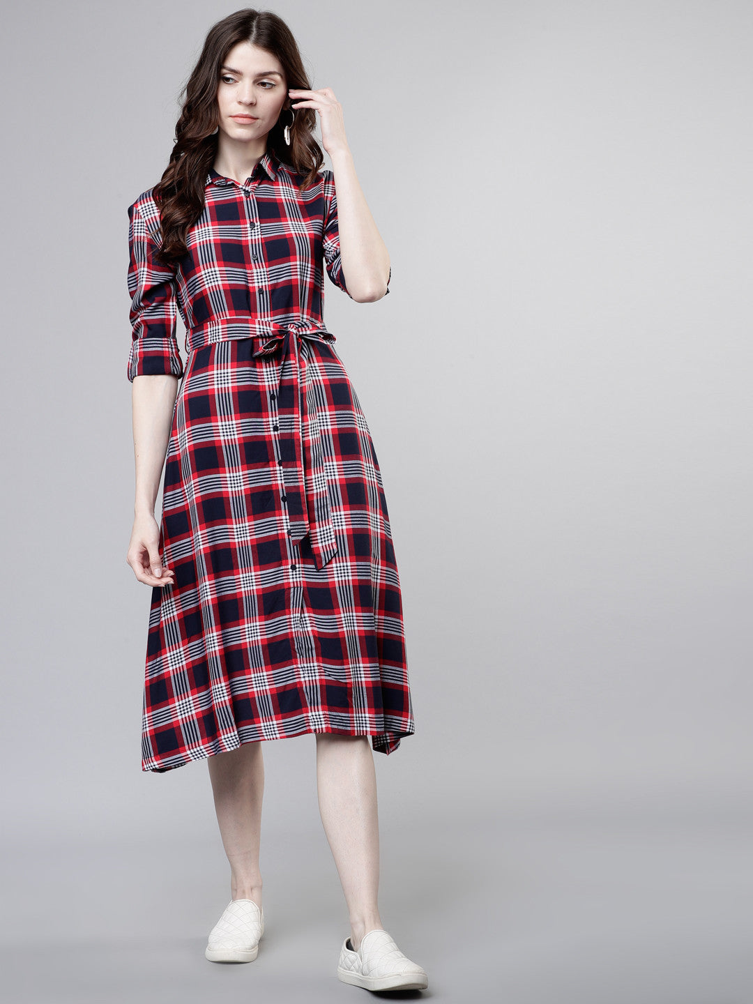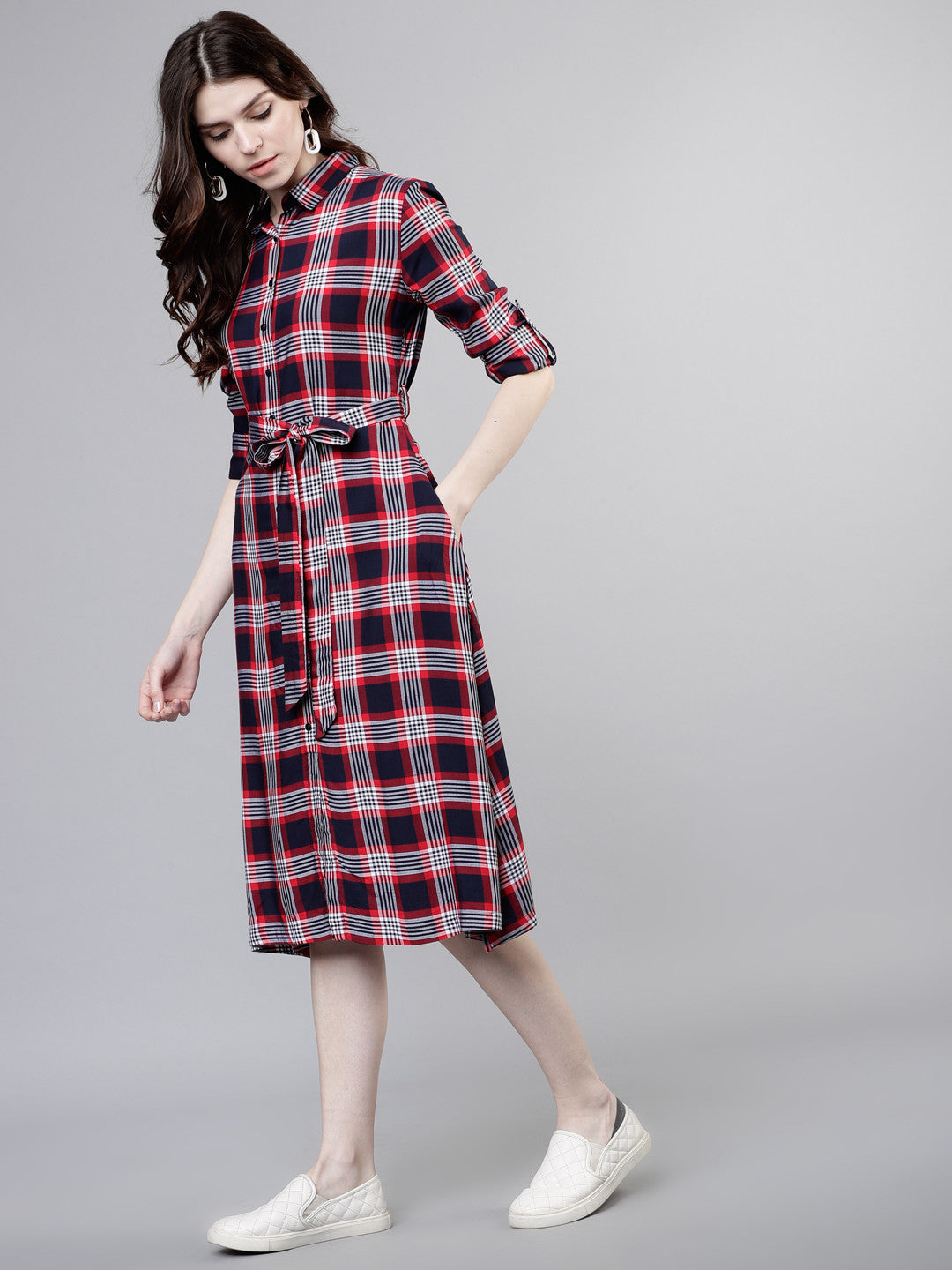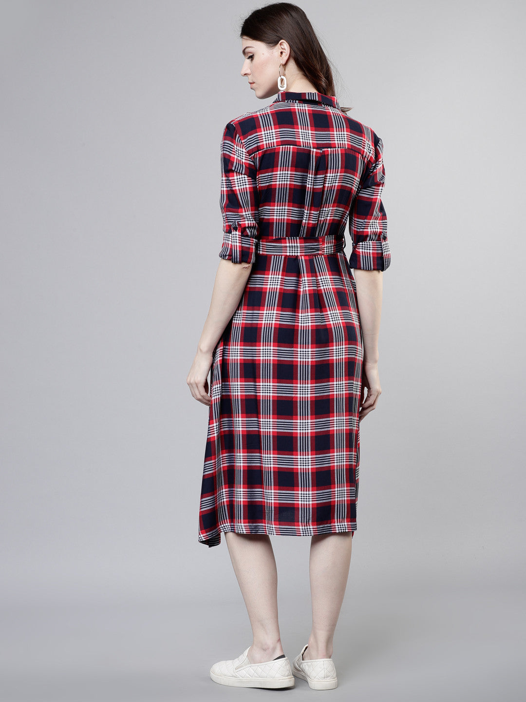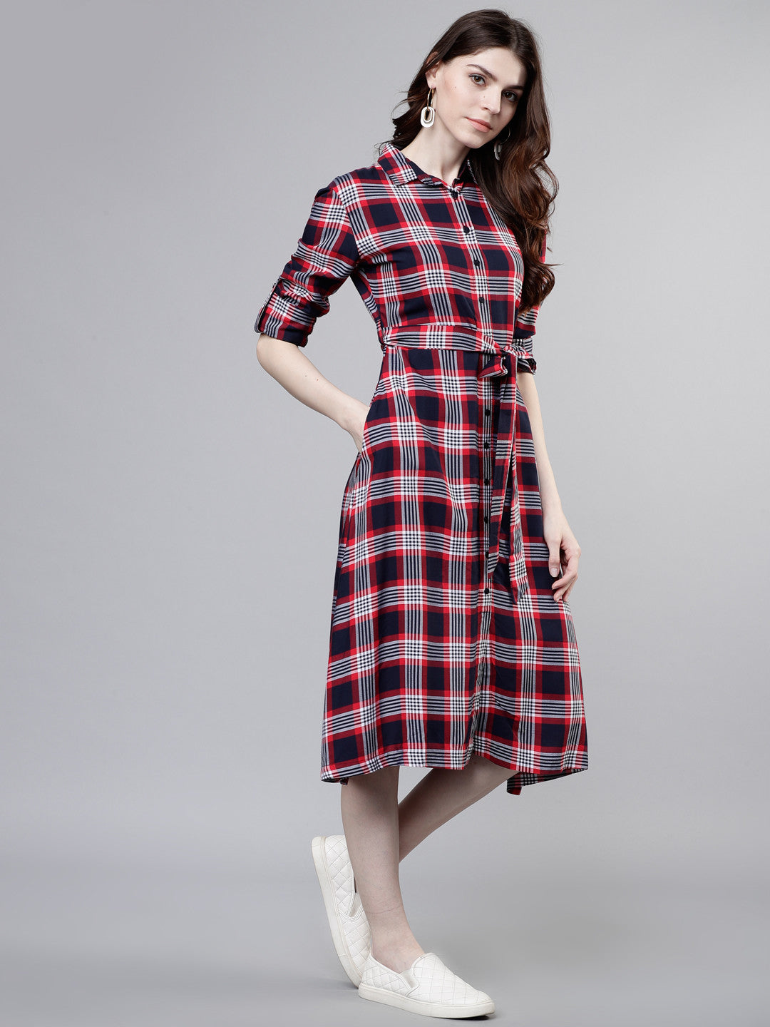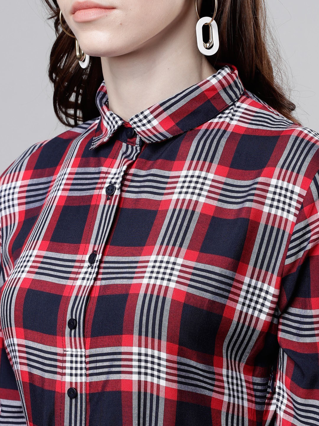 Queen ellie Women Navy Blue Checked Shirt Dress