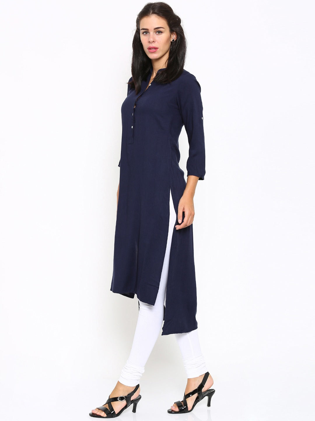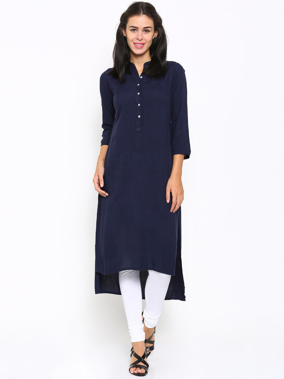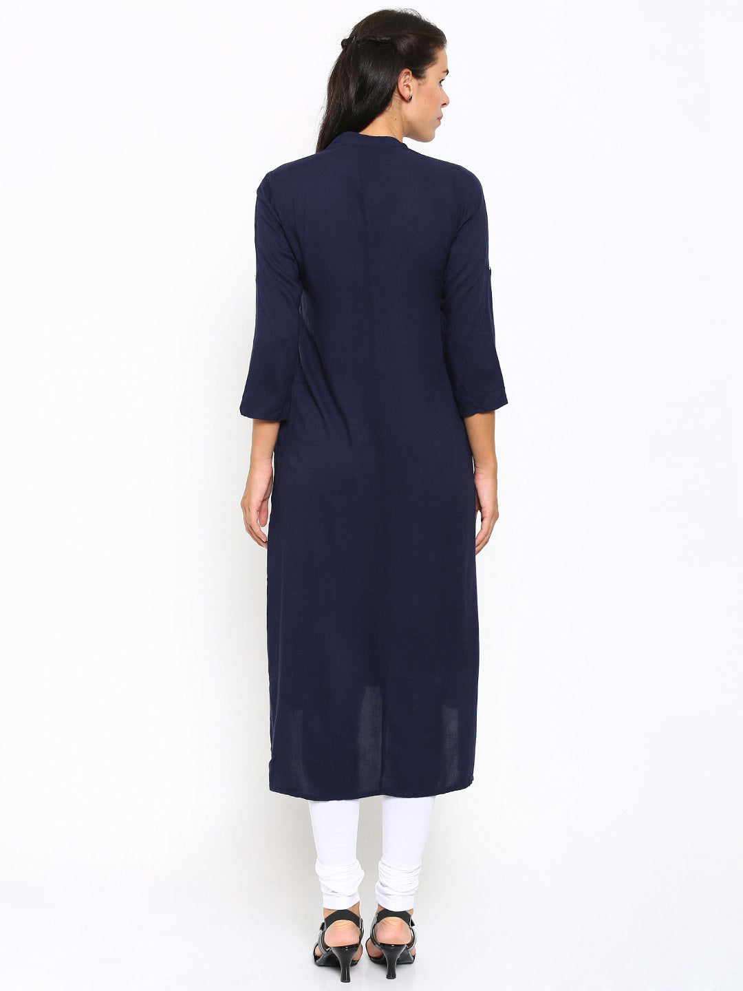 Queen ellie Women Navy Solid Straight Kurta