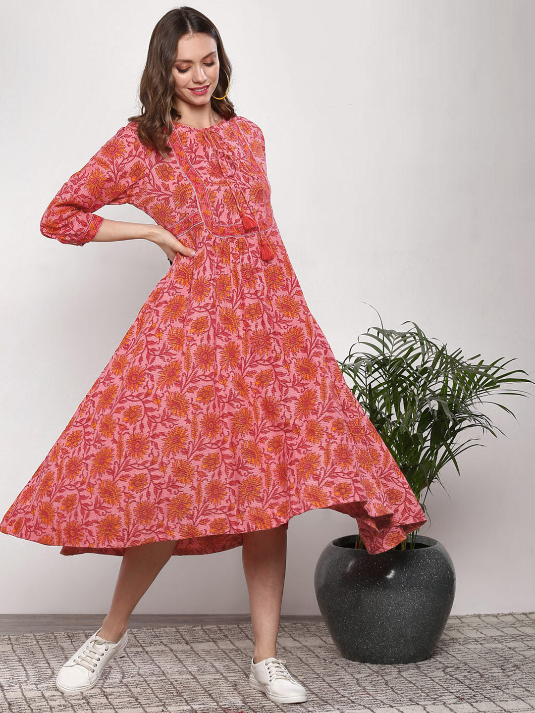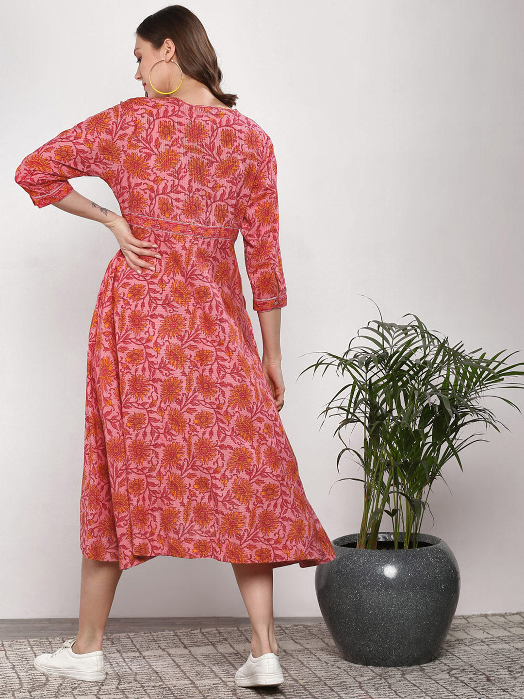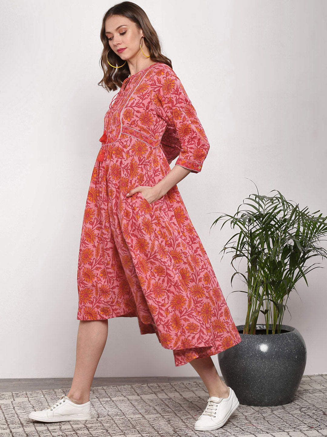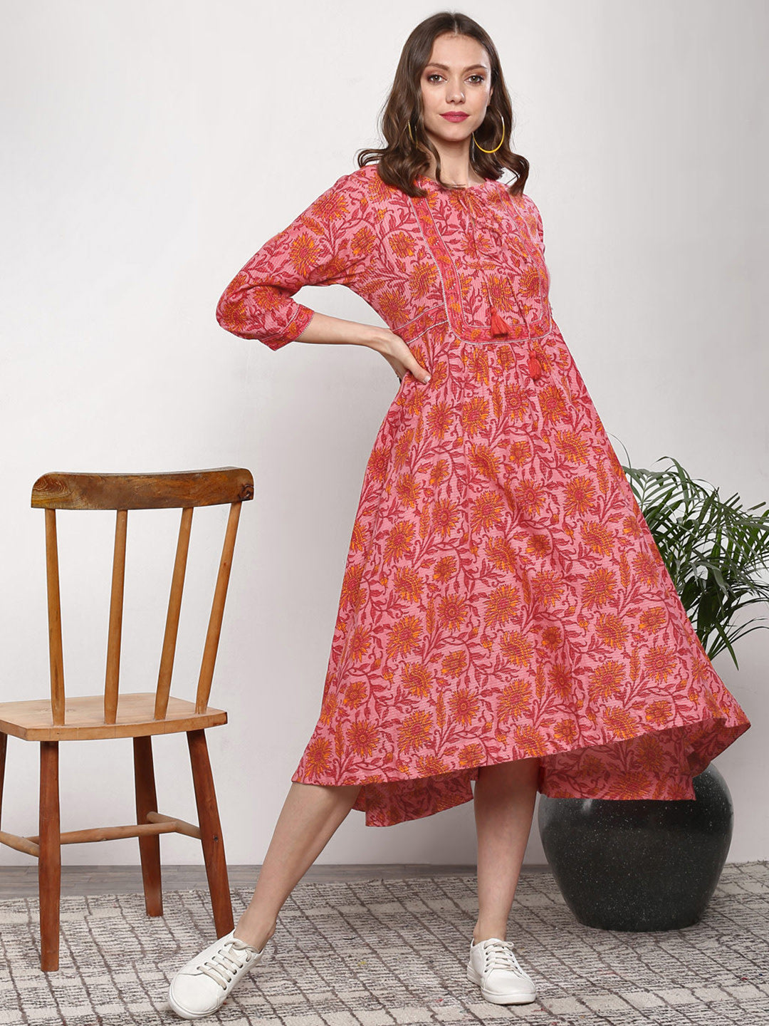 Queen ellie Women Pink & Red Printed A-Line Dress