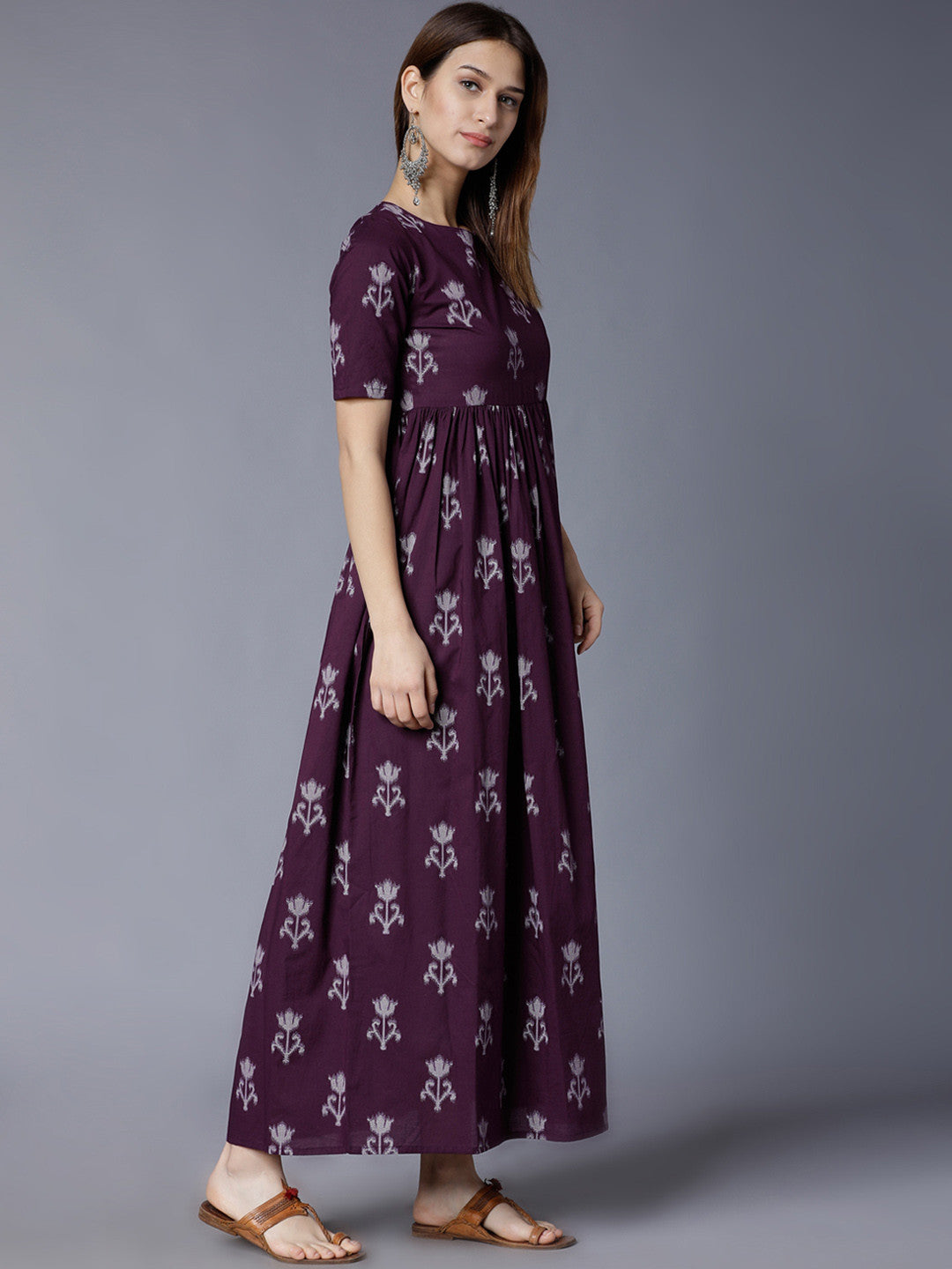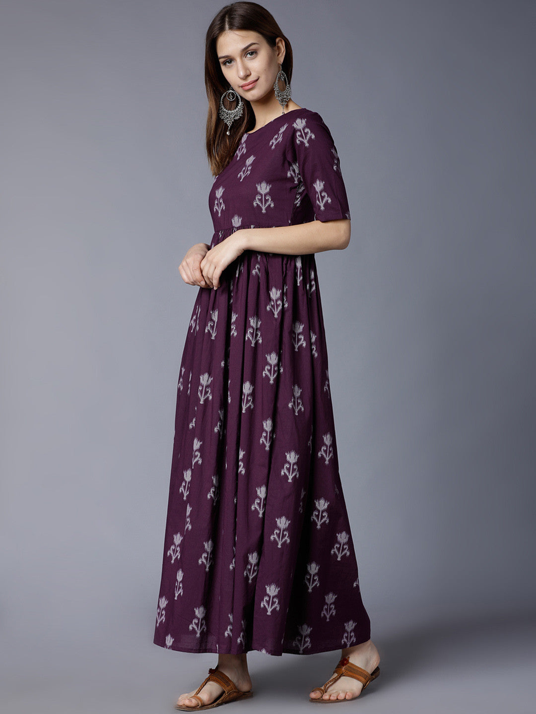 • Load image into Gallery viewer, Queen ellie Women Purple Printed Maxi Dress