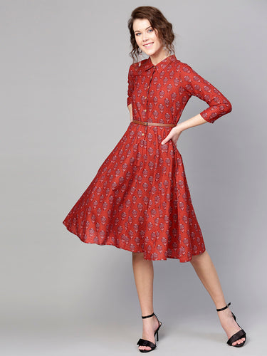 Queen ellie Women Rust Red Printed A-Line Dress