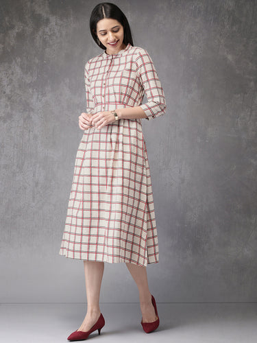 Queen ellie Women Off-White & Red Checked A-Line Kurta