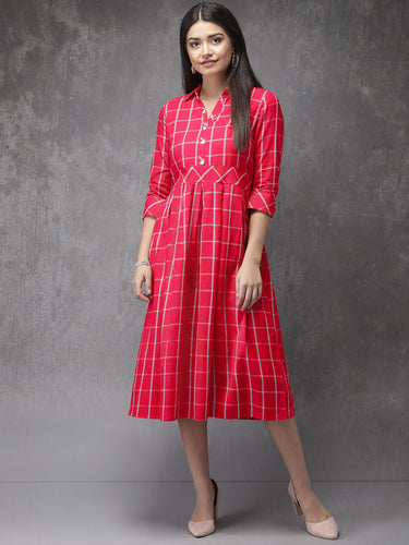 Queen ellie Women Pink & White Checked Fusion A-Line Kurta