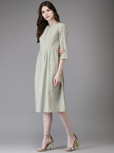 Queen ellie Women Green & Mustard Printed A-Line Kurta