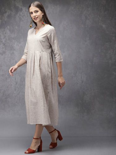 Queen ellie Women Off-White & Brown Checked A-Line Fusion Kurta