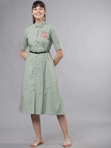 Queen ellie Women Green & Blue Striped A-Line Dress