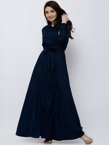 Queen ellie Women Navy Blue Solid Maxi Dress