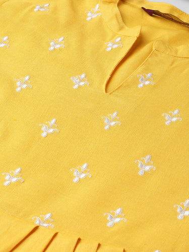 Queen ellie Women Yellow & White Solid A-Line Dress