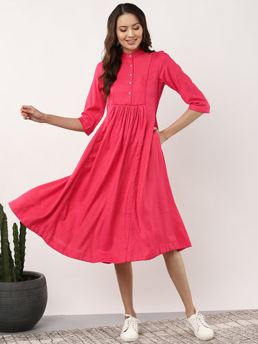 Queen ellie Women Pink & Red Printed A-Line Dress