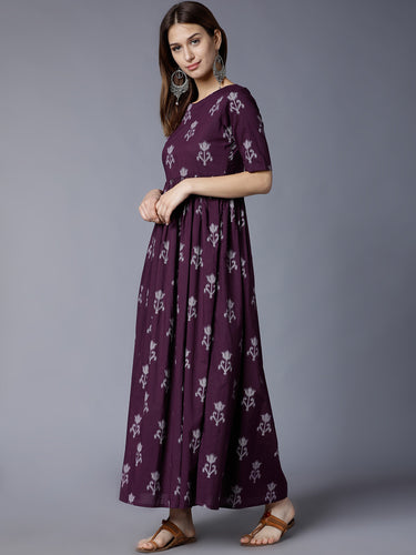 Queen ellie Women Blue Indigo Hand Block Print A-Line Dress with Gathers Detail