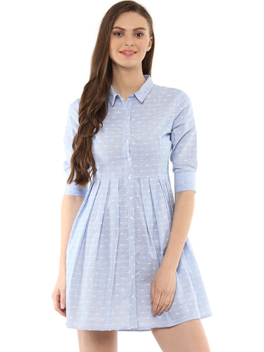 Queen ellie Women Blue Self-Striped Pleated Shirt Dress