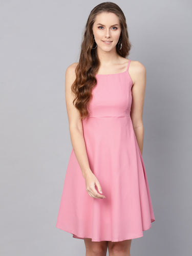 Queen ellie Women Pink Solid Fit and Flare Dress