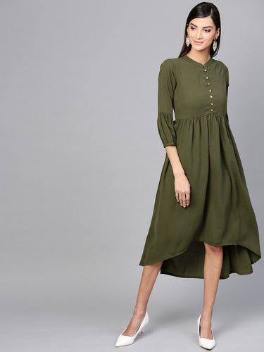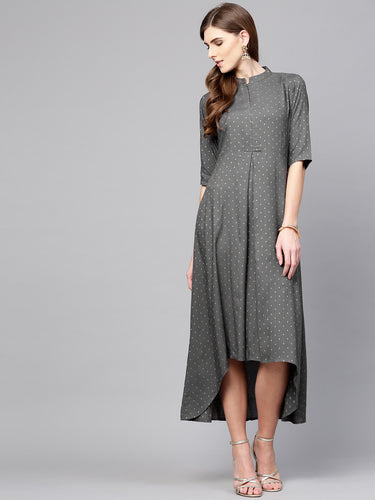Queen ellie Women Grey Self Design Midi A-Line Dress