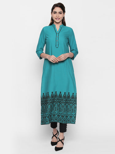 Queen ellie Women Black & Blue Printed Straight Kurti