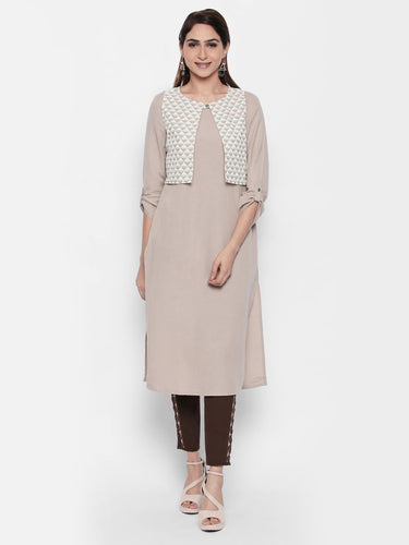 Queen ellie Women Pink & Golden Printed Straight Kurti