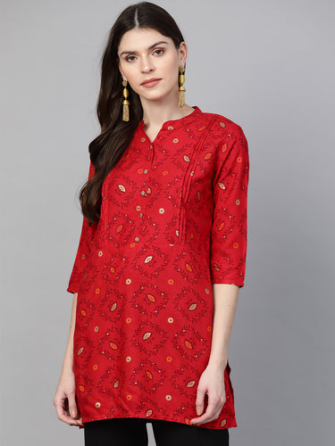 Queen ellie Women Red & Golden Printed Straight Kurti