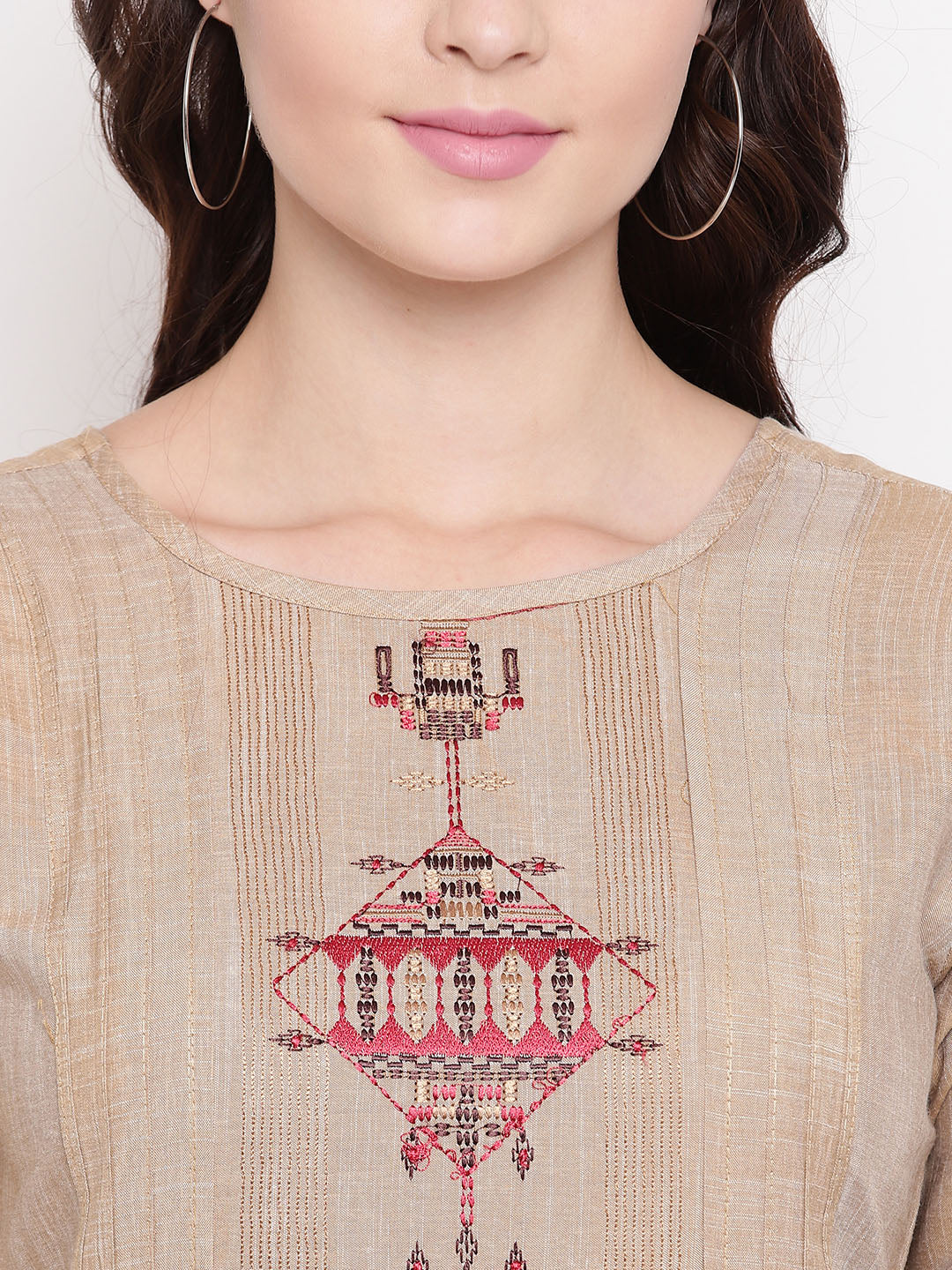 Queen ellie Women Brown Solid A-Line Kurti