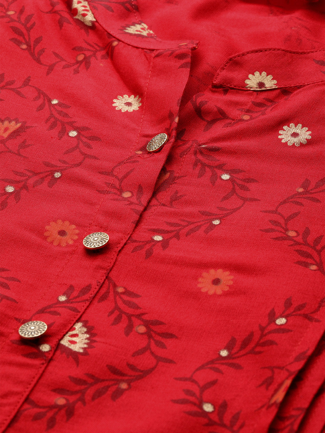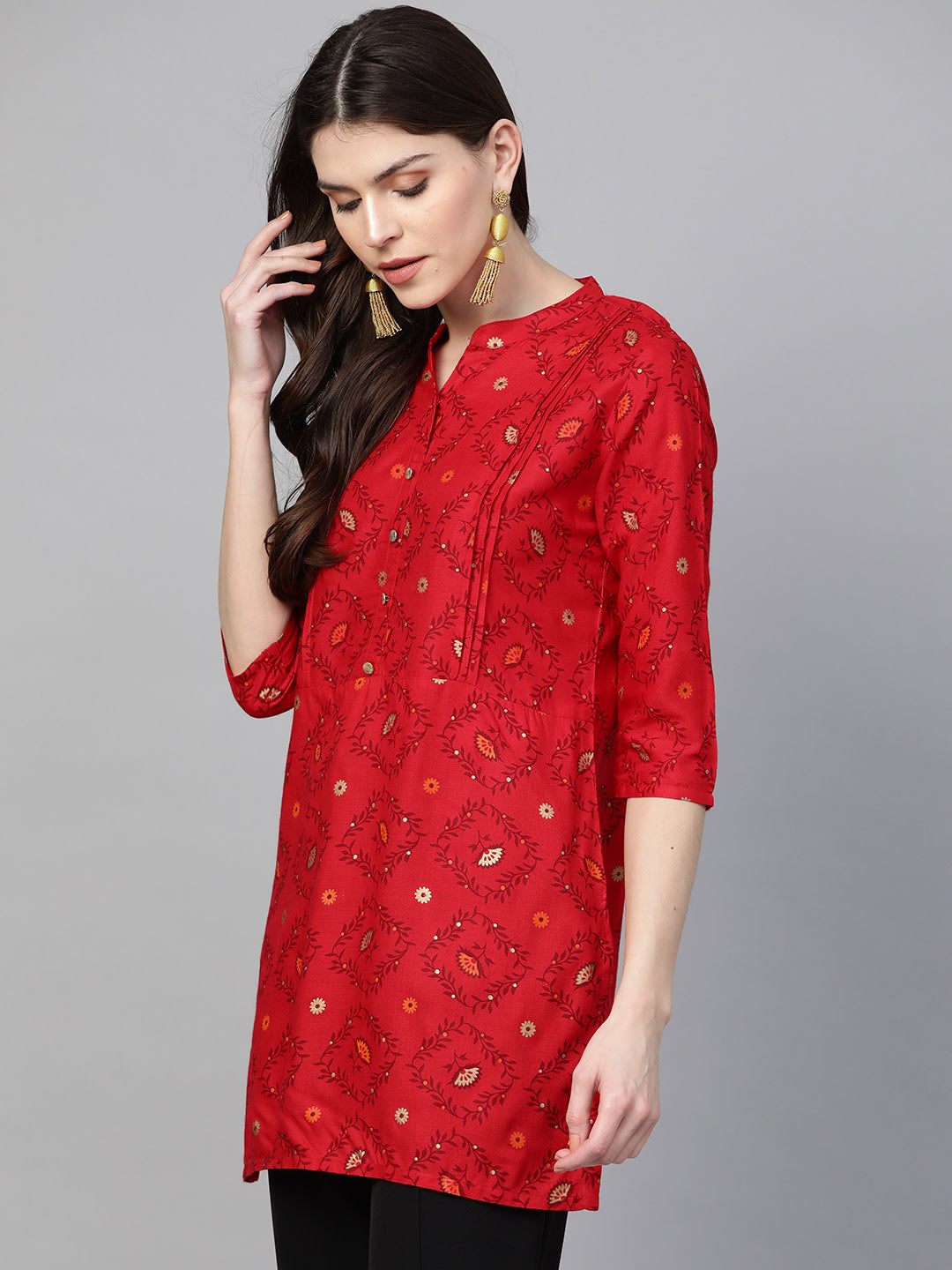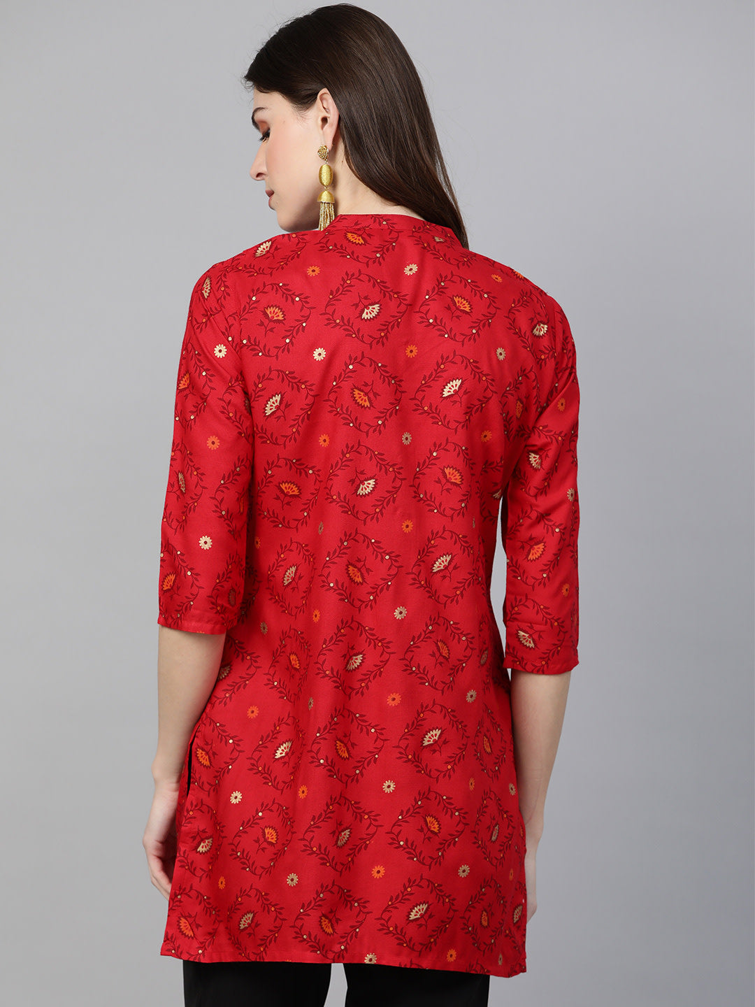Queen ellie Women Red & Golden Printed Straight Kurti