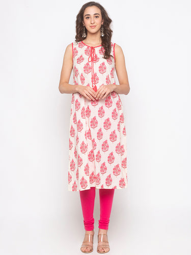 Queen ellie Women Navy Blue & Off-White Printed A-line Kurti