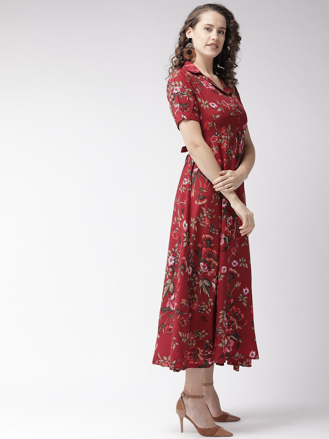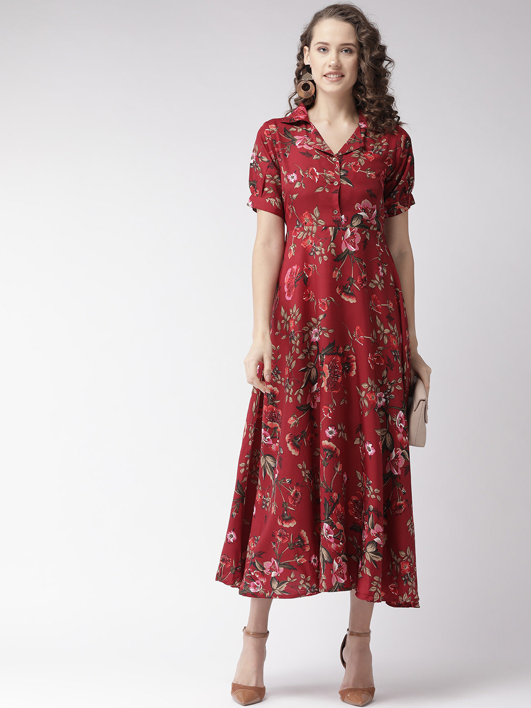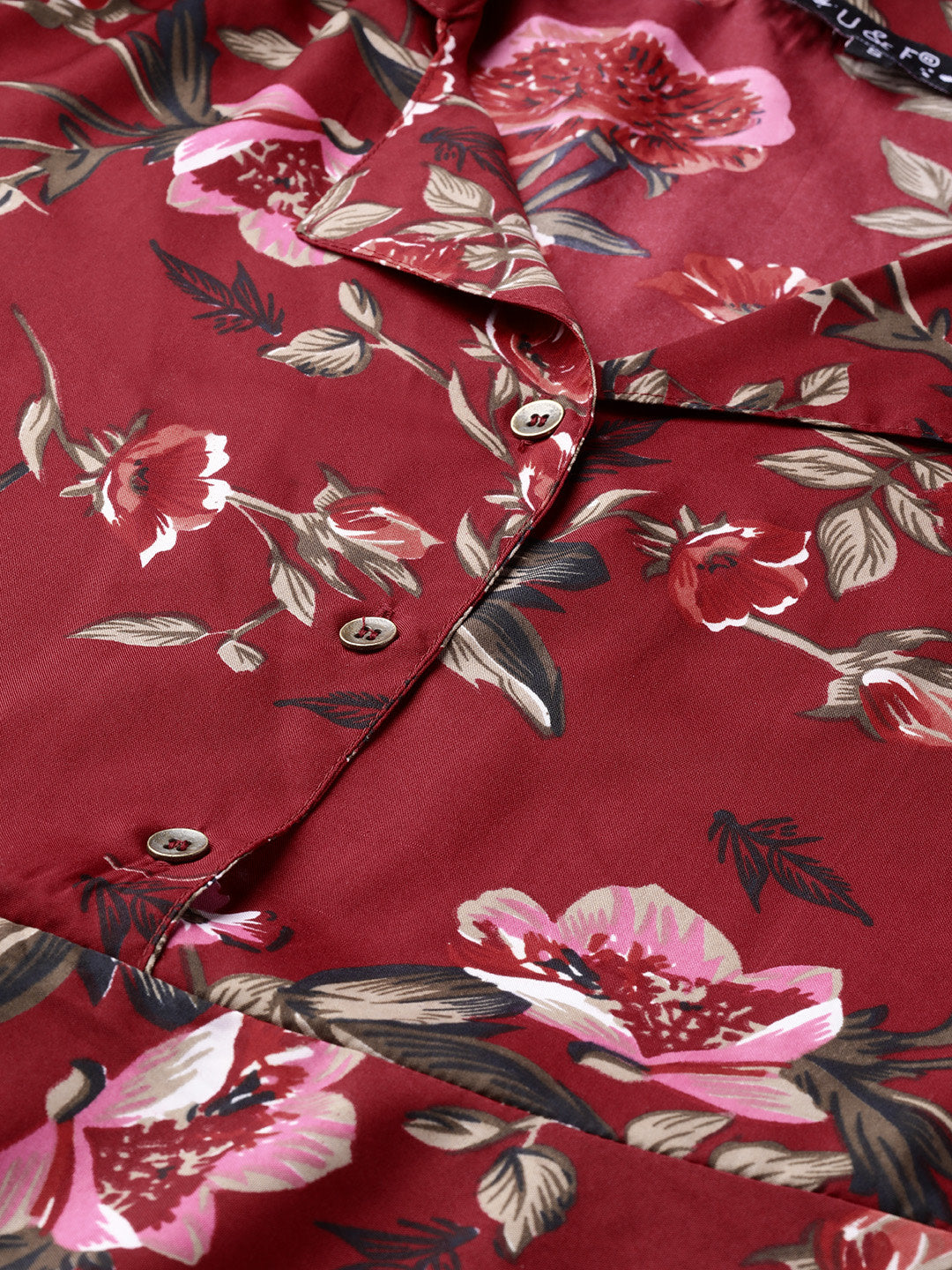 Queen ellie Maroon & Olive Green Floral Print Maxi Shirt Dress