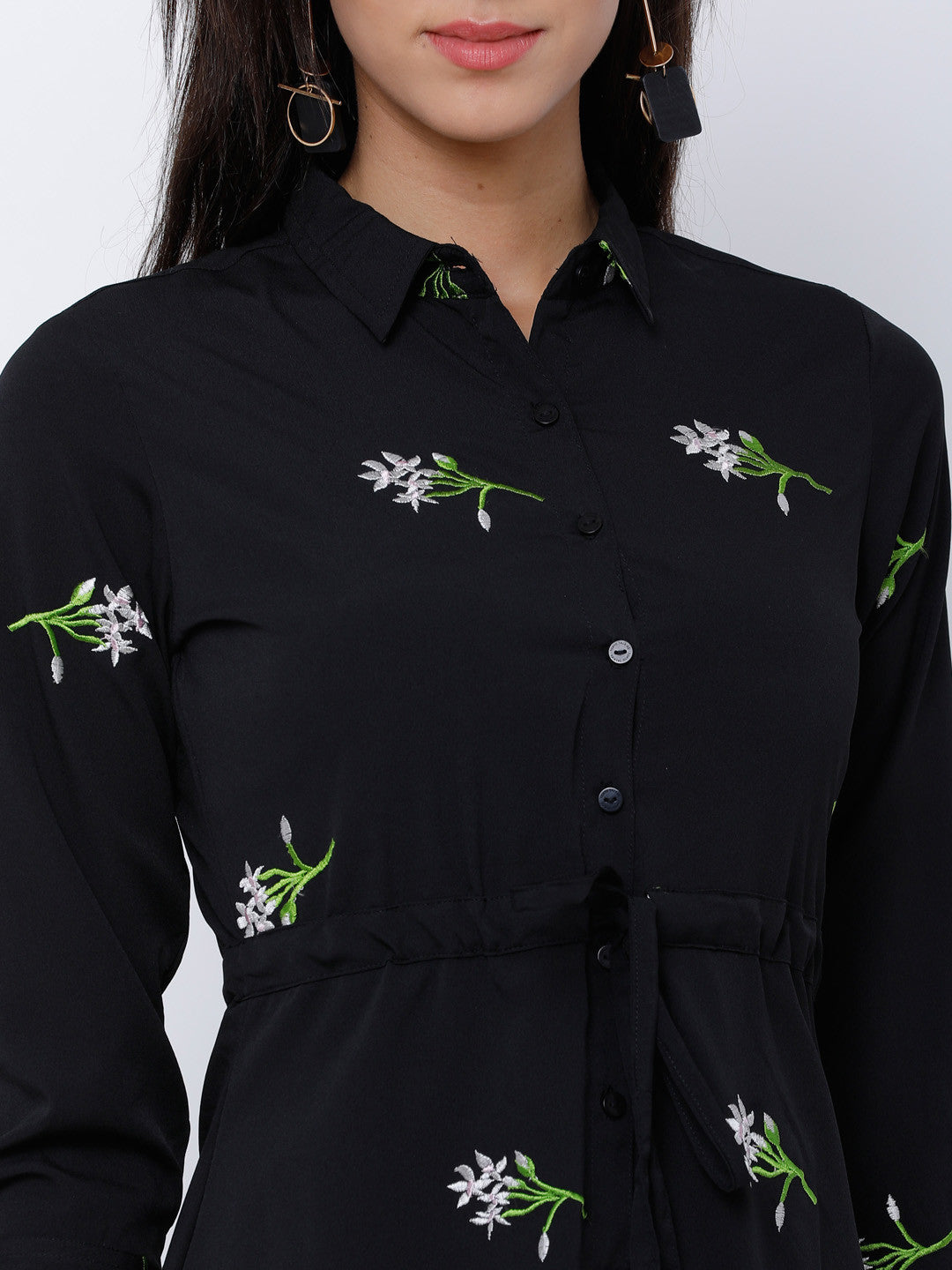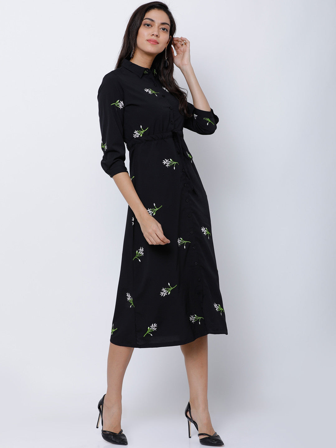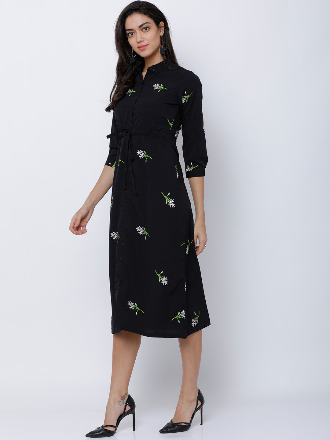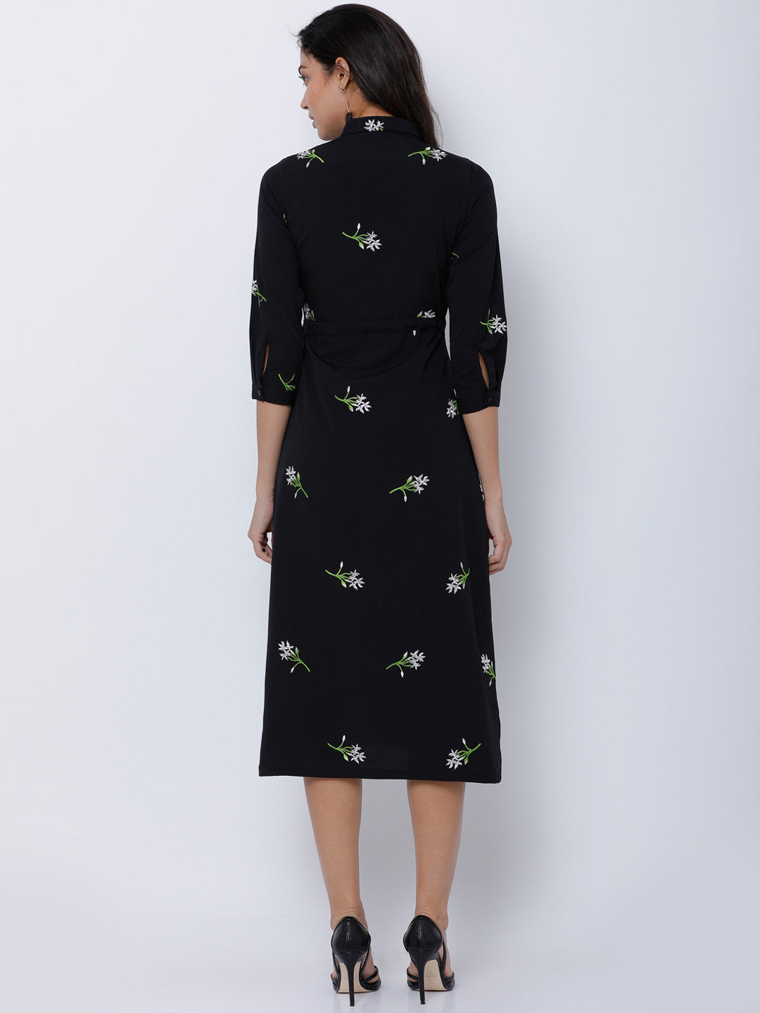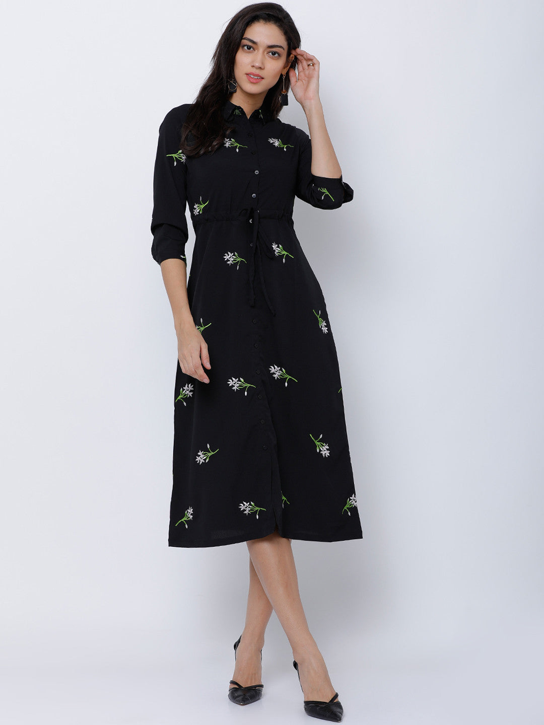 • Load image into Gallery viewer, Queen ellie Women Black Printed Shirt Dress
