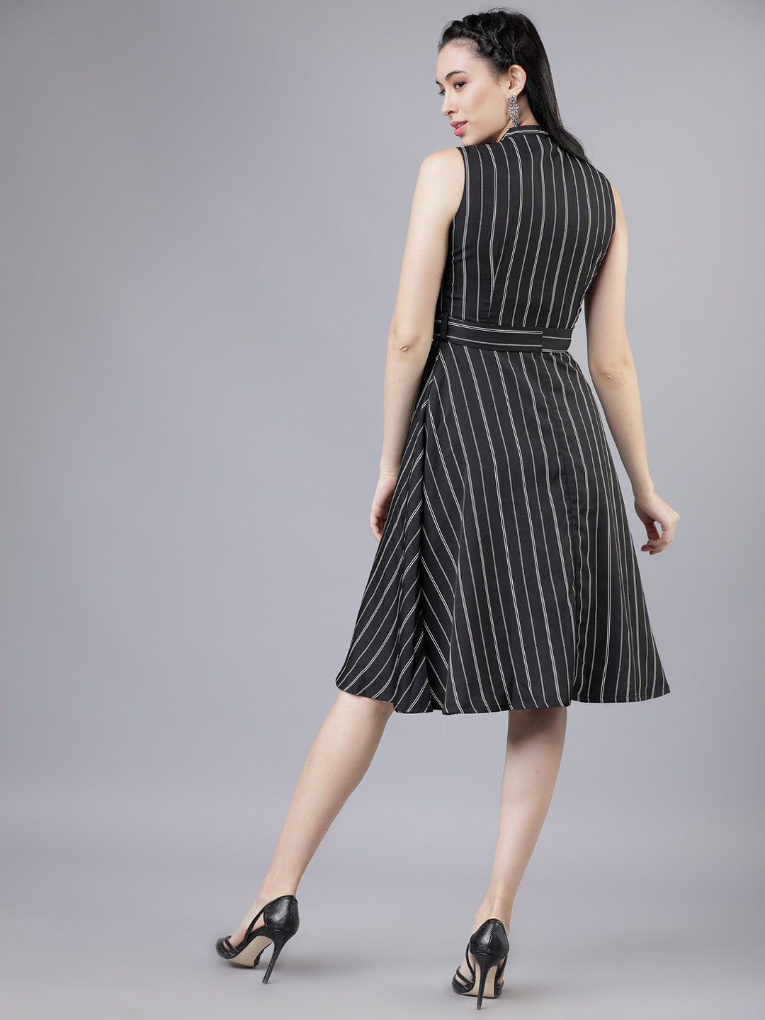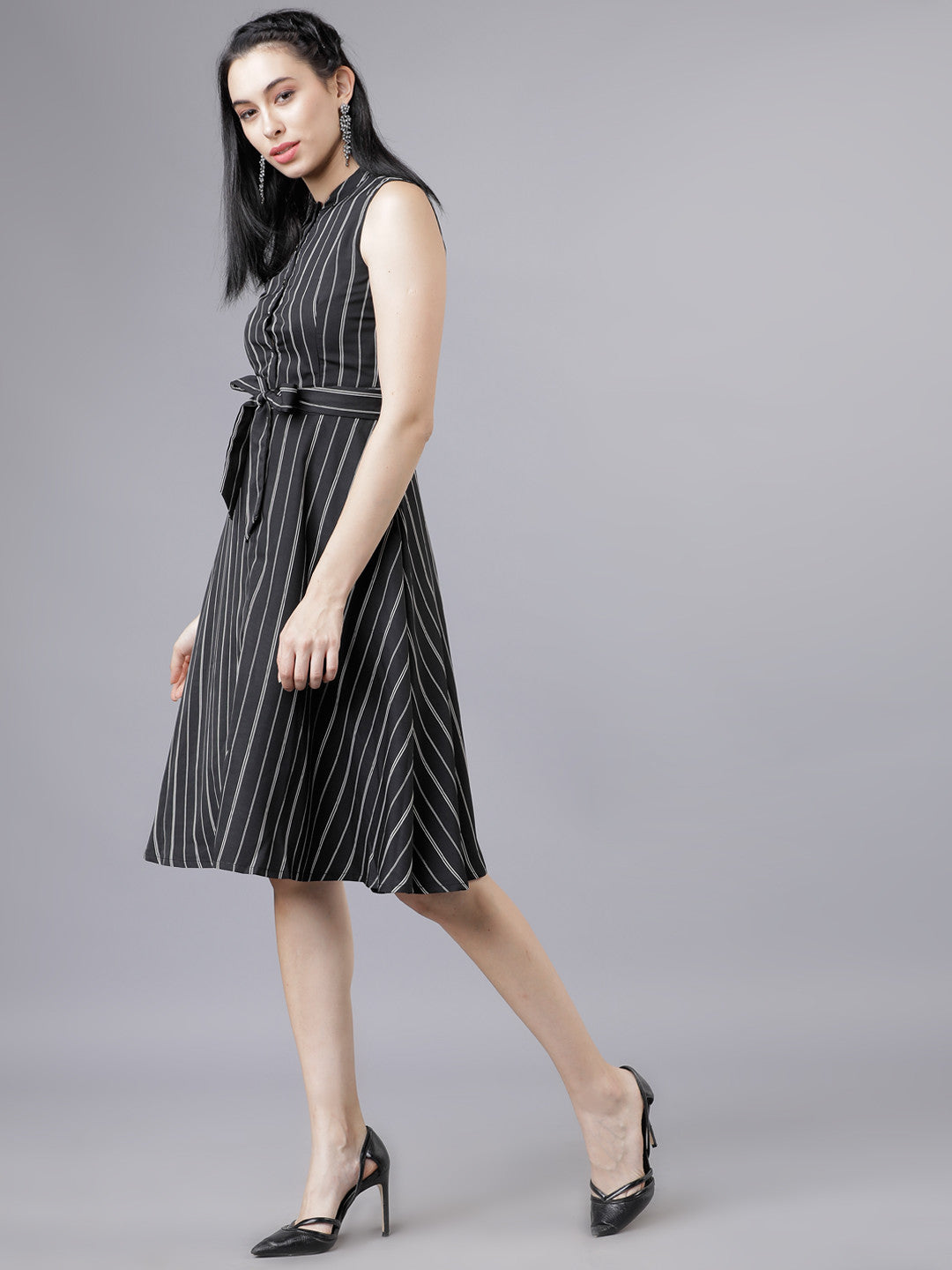 • Load image into Gallery viewer, Queen ellie Women Black & White Fit and Flare Dress