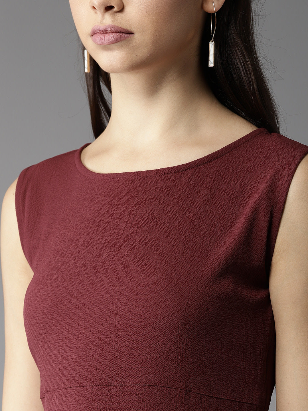 • Load image into Gallery viewer, Queen ellie Women Burgundy Solid Sheath Dress