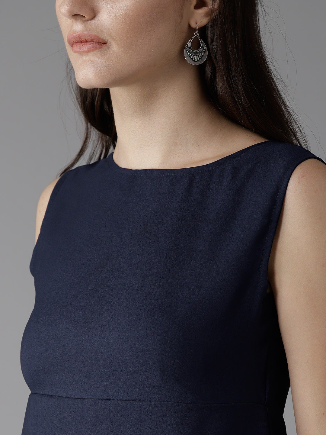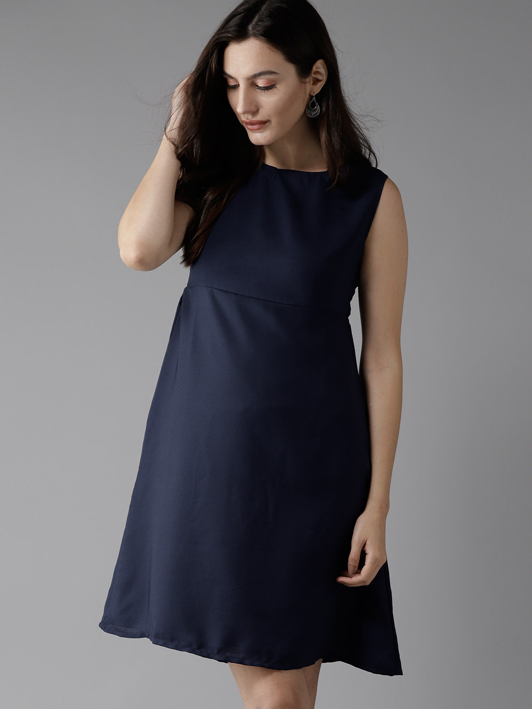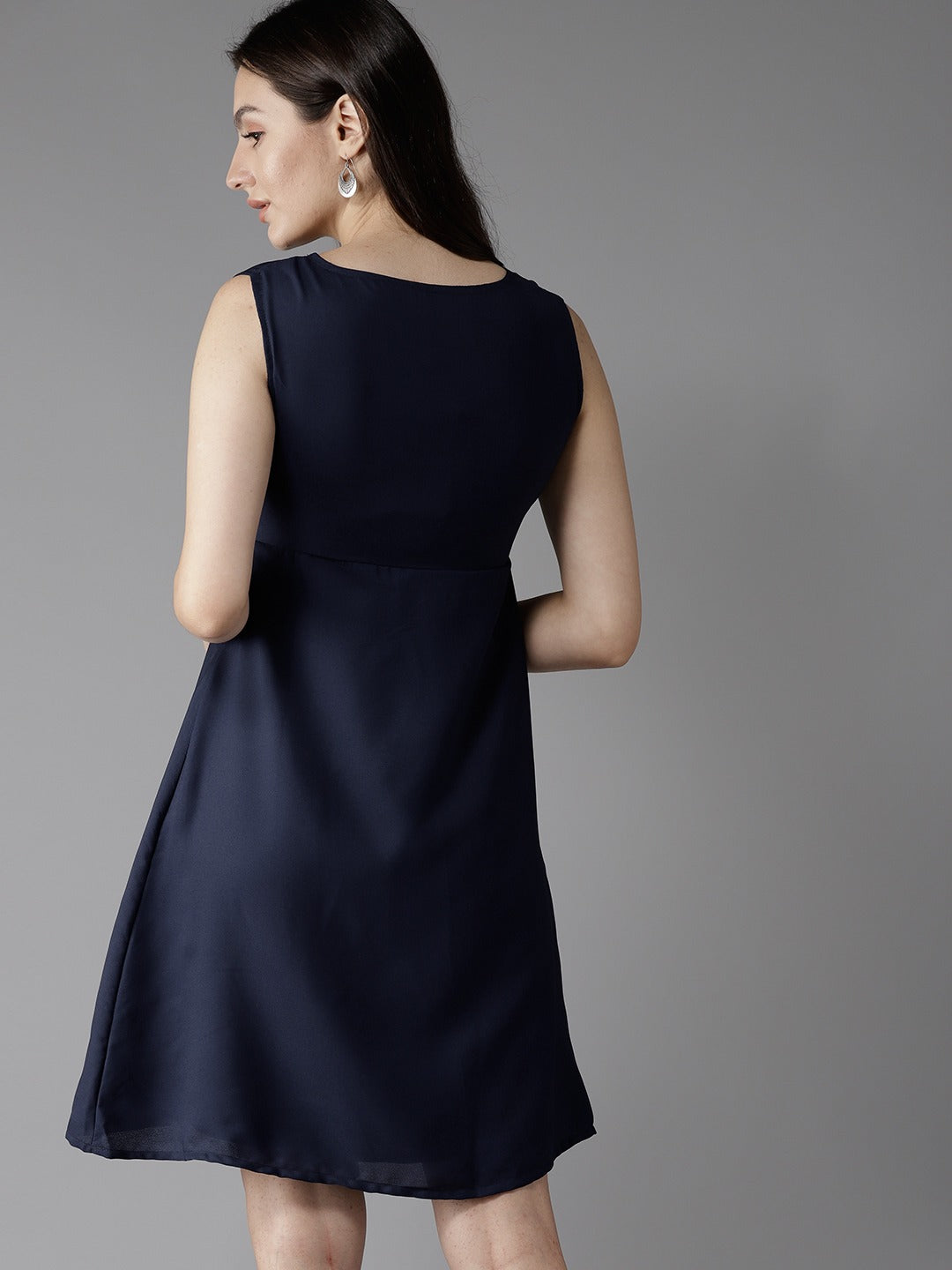 Queen ellie Women Navy Blue Solid A-Line Dress