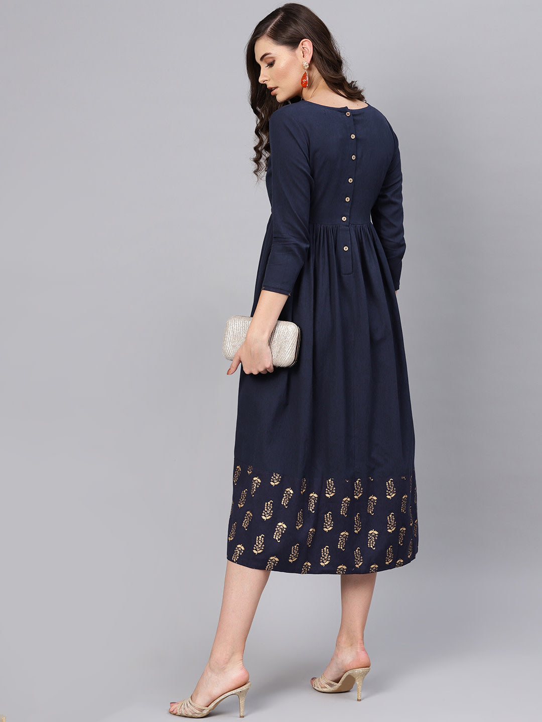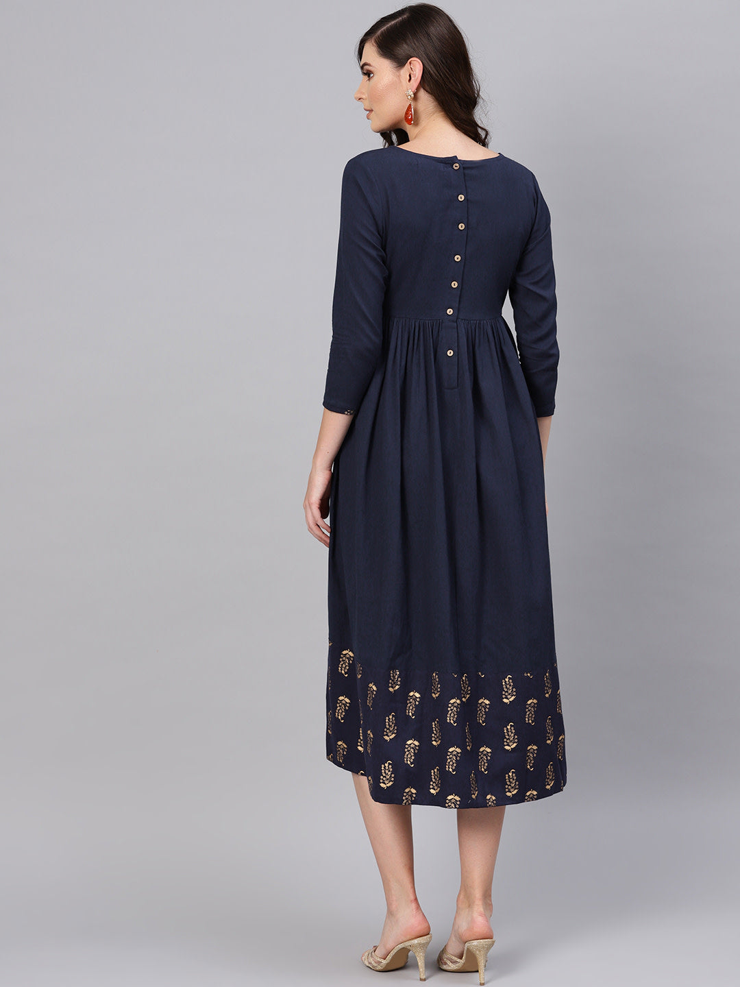 Queen ellie Women Navy Blue Solid A-Line Dress